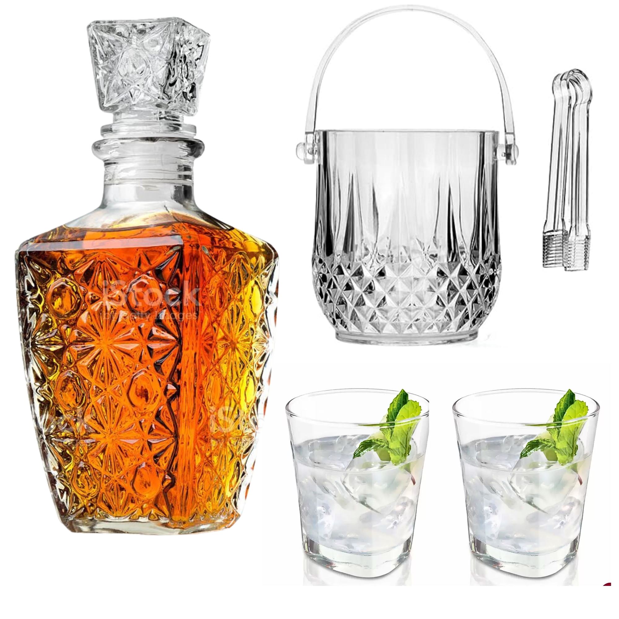 Licorera: Marca: Ichimatsu Capacidad: 1000 ml Alto: 29 cm Diámetro: 9.5 cm JGO 6 Vasos whiskero Marca: Tumbler Capacidad: 330 ml 7oz La perfecta combinación entre este decantador y los vasos es un tributo al arte de disfrutar del whisky en su forma más sublime. Cada detalle, desde el grabado en relieve hasta el equilibrio en el diseño, ha sido concebido para elevar el ritual de servir y degustar whisky a una experiencia de lujo inigualable. Cuando usted elige nuestro decantador de licor en vidrio fino y su juego de vasos, está eligiendo la cúspide del arte en vidrio y la excelencia en la fabricación. Es una declaración de buen gusto y una celebración de la calidad inigualable, una pieza digna de adornar cualquier colección y de enriquecer cualquier ocasión especial. El juego de vasos que lo acompaña no es una simple adición, sino una parte integral de esta experiencia única. Cada vaso ha sido cuidadosamente moldeado para complementar la forma y el diseño del decantador, creando una armonía visual que despierta los sentidos antes incluso de saborear el licor. Con la misma artesanía meticulosa que distingue a nuestros decantadores y vasos garantizando que cada pieza sea una obra maestra única. Los intrincados labrados que adornan su superficie son una prueba de la destreza artesanal y el compromiso con la excelencia.