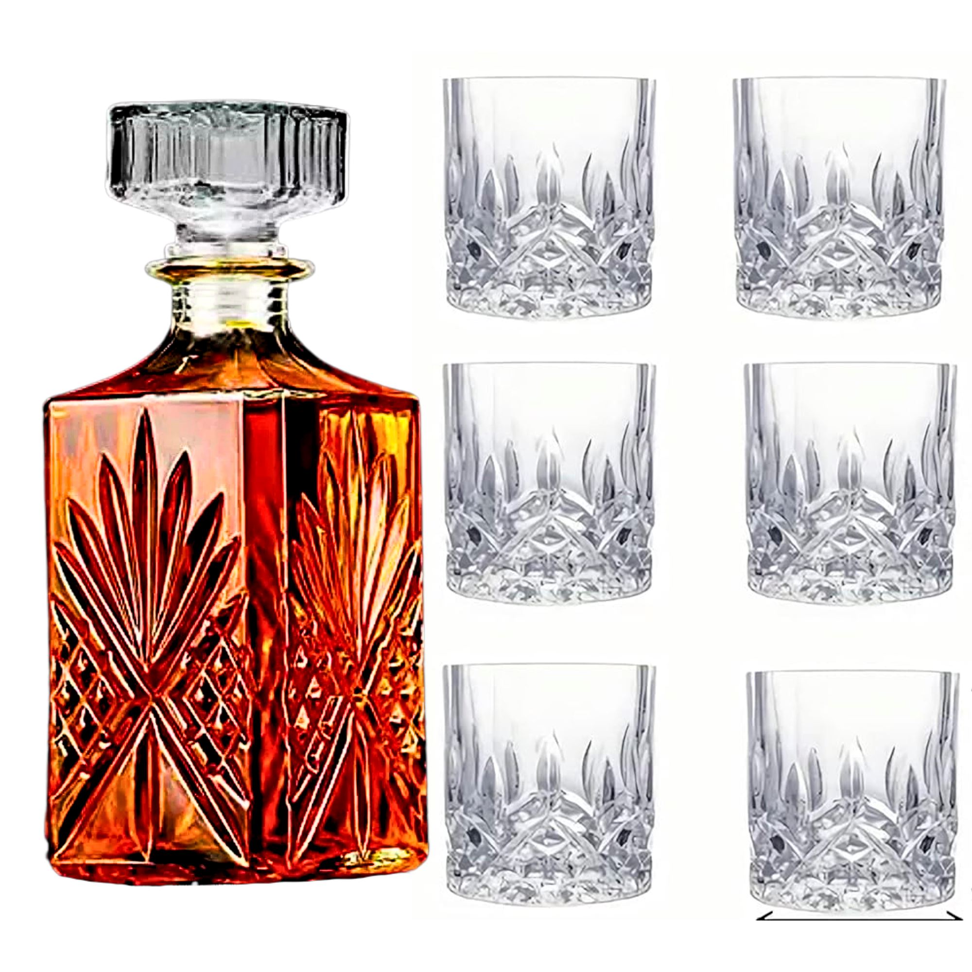 Licorera: Marca: Genérico Capacidad: 970 ml Alto: 23 cm Diámetro: 9.4 cm JGO 6 Vasos whiskero Marca: GLASS TUMBLER Capacidad: 330 ml Hielera: Marca: G-Horse Modelo: ICE BUCKET Capacidad: 1000 ml Incluye 1 pinza Acrílico La perfecta combinación entre este decantador, hielera y los vasos es un tributo al arte de disfrutar del whisky en su forma más sublime. Cada detalle, desde el grabado en relieve hasta el equilibrio en el diseño, ha sido concebido para elevar el ritual de servir y degustar whisky a una experiencia de lujo inigualable. Sin duda, permita que le transporte a un mundo de exquisitez y sofisticación a través de la descripción de esta magnífica obra maestra: un decantador de licor en cristal fino, acompañado por un juego de vasos, diseñado para realzar la experiencia de degustación de whisky. El diseño de la hielera ha sido cuidadosamente concebido para complementar la estética de nuestros decantadores, vasos y copas, creando así una sinfonía visual que eleva la experiencia de servir y disfrutar de tragos de alta calidad. Cada detalle, desde los motivos decorativos hasta la elección de los materiales, ha sido pensado para añadir un toque de sofisticación a su ocasión especial. El juego de vasos, diseñado para acompañar al decantador, presenta una base ponderada que confiere estabilidad a la experiencia de degustación. Su borde fino y pulido se encuentra en perfecta armonía con la textura suave del whisky, permitiendo que cada sorbo sea un deleite para los sentidos.